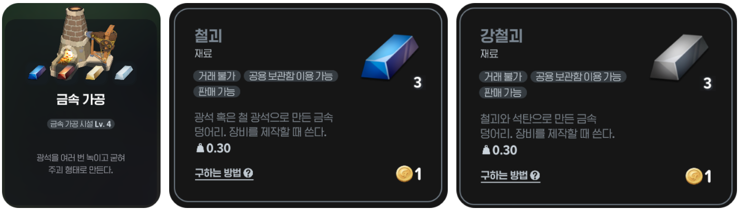 | 철괴(광석) | 광석 20개 | - | - |