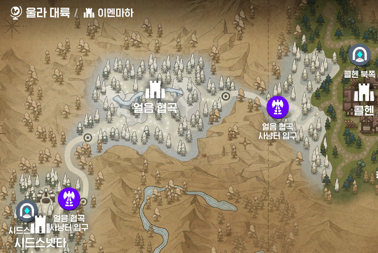 1. '콜헨', 사진의 위치로 이동 (준비물: 도끼)
