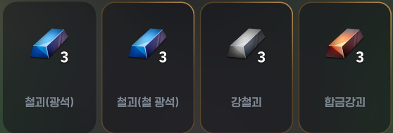 | 강철괴 | - | 철괴 3개 | 석탄 4개 |