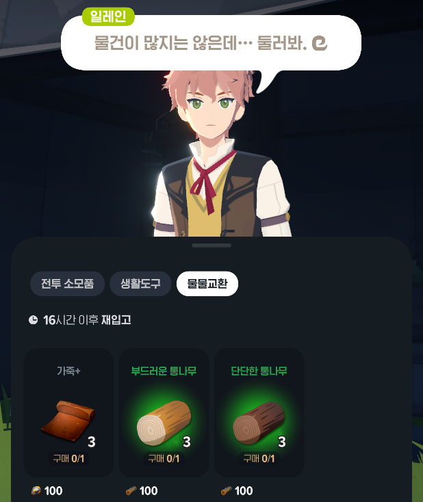 - 특징: 일일 교환, 캐릭터당 1회 구매 가능
