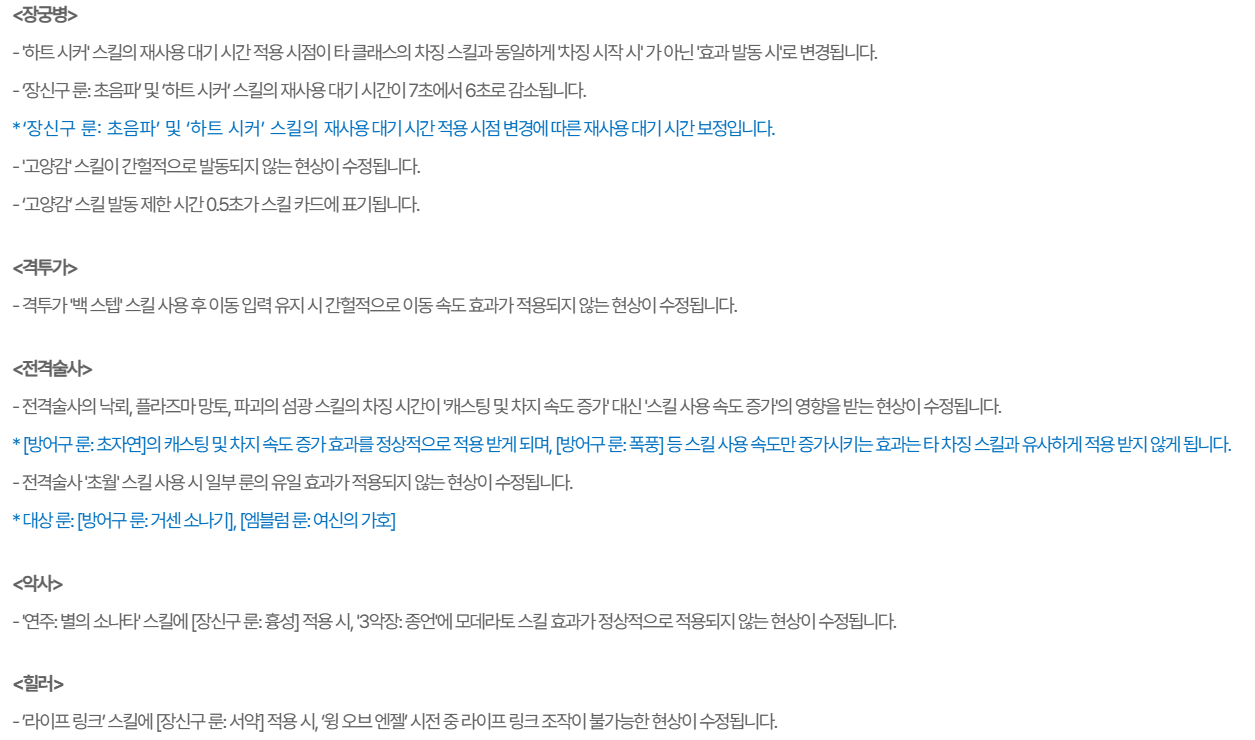 - 스킬 수정: 장궁병, 격투가, 전격술사, 악사, 힐러