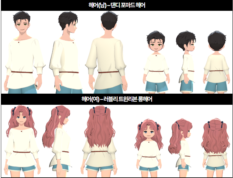 > '러블리 트윈리본 롱헤어(여)'는 헤어 색상 외에도 액세서리 색상 선택 가능